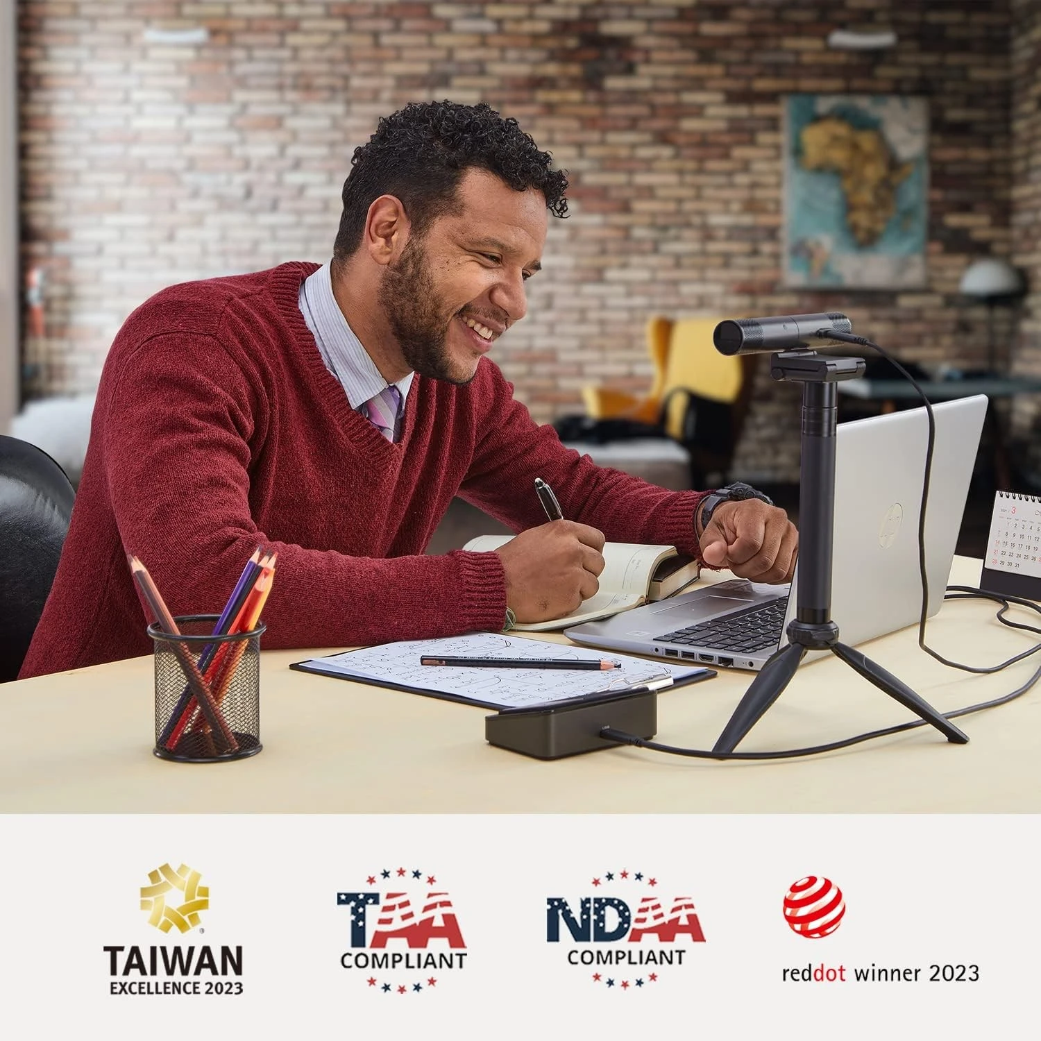 More than a Webcam. The DUALCAM PW313D is a 2-in-1 webcam equipped with two cameras to capture two different angles simultaneously. The combination of a webcam and doc cam captures both yourself and any other object or documents on your table. It is a reliable video and audio device for video conferences, online teaching, and online tutoring. An Innovative 2-in-1 Webcam With an innovative design that is both lightweight and portable, making it easy to carry and use with high-quality communication, show yourself and share documents and other materials during video conference calls or remote teaching easily. Both Cameras have Adjustable Angles. Flexible Mounting And Setup Mount on any monitor or laptop with the universal mounting clip or attach to a tripod (1/4″ thread) to help you find the most optimal setup angle. Stay Protected. The DualCam PW313D has built-in privacy shutters (webcam cover) to prevent unintentional capture and keep yourself safe. Dual Microphones with AI Noise Reduction Two built-in microphones, one on each side of the webcam, capture a wider and more immersive sound field. The AI noise reduction feature amplifys the speaker’s natural voice and removes ambient noises. The microphones capture audio naturally and clearly up to 3 m/9.8 ft. in all directions. Easy to Use. Simply plug the webcam into your computer’s USB 2.0 port to begin using. Powerful CamEngine 4 With CamEngine 4, our free video and audio optimization software, you can access all of the webcam’s features such as video rotation, zoom, picture-in-picture, keystone correction and annotation tools to enhance any lesson or video call. Enrich Your Online Teaching / Meetings We offer a way to add more visuals and information to your teaching or meeting. For example, easily show your handwritten work, graphs, drawings, or a demonstration in a video conference or lecture. More from the Manufacturer |