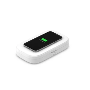 Sanitize While You Charge Our UV sanitizer doubles as a 10W fast wireless charger, allowing you to charge your Qi-enabled smartphone while you sanitize another device or nonporous item-like keys, cards, cash, and rings-at the same time. Wireless charger is case compatible with phone cases up to 3mm thickness. Eliminate Up to 99.99% of Bacteria Our UV Sanitizer is equipped with dual sanitizing UV-C LED lights, eliminating up to 99.99% of bacteria on your nonporous items in ten minutes or less. Earth Friendly and Safe Safely sanitize your smartphone without the use of heat, chemicals, or liquids. Our UV sanitizer uses LED light so there’s no risk of exposing you or your loved ones to mercury. Reduce waste with a UV-C light lifetime that’s 3x that of traditional UV-C lamps. Get a Faster Wireless Boost Simply align your Qi-enabled iPhone, Samsung, or Android device on top of the sanitizer to charge. This gives you easy access to your phone while other items sanitize at the same time. Wireless charger is case compatible with cases up to 3mm. Ready to Sanitize Get charging and sanitizing immediately. Comes with a 4ft USB-A to USB-C cable and an optional 18W power source for instant use out of the box. Sanitize All Your Daily Items Give yourself peace of mind by eliminating up to 99.99% of bacteria from the items you touch every day. Our UV sanitizer has two modes to sanitize your keys, cards, rings, or mobile devices, giving a quick clean in three minutes or a deep clean in ten. Compact and Easy to Use Easily and quickly sanitize your device or other nonporous items with one touch cleaning. Once it’s done sanitizing it turns off on its own. Plus, it’s compact enough to fit on your desk, kitchen counter, or bedstand. |