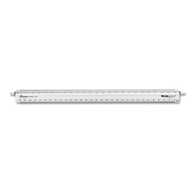 Designed for the exacting needs of engineers. Change units quickly and easily by rotating dial at either end of scale. 12″ measuring length, exact calibrations. Highest quality aluminum. Adjusts to 10, 20, 40 and 50 parts to the inch. Aluminum Engineers Ruler, 12″, Silver. Ruler Type: Triangular Scale; Length: 12″; Material(s): Aluminum; Color(s): Silver.