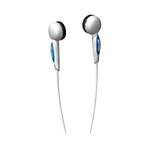Dynamic sound reproduction provides an exceptional listening experience. Lightweight design for maximum comfort and extended use. Soft-touch rubber cord keeps your headphones safe and prevents tangling. Ideal for all portable music players. Earpiece Type: Earbuds; Earpiece Material: Silicone; Color(s): Silver; Batteries Required: No.