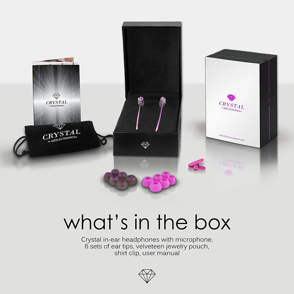 Presented in a luxurious jewelry box, the Crystal Earphones by MEE audio (formerly MEElectronics) are the perfect gift to dazzle a friend or yourself.