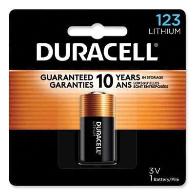 Duracell High Power Lithium batteries are designed and developed to offer reliable, long-lasting power for your specialty devices such as digital cameras, flashlights, motion detectors, security sensors, thermostats, and much more. They will preserve power and are guaranteed in storage for up to ten years in storage, so you can be confident these batteries will be ready when you need them. Battery Type: Lithium; Battery Size: 123; For Use With: Digital Cameras; Hands Free Equipment; Voltage: 3 V.
