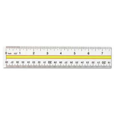Simplify reading across computer sheets with the tinted guide. Clear plastic ruler has a see-through yellow center panel to highlight one line. Beveled edges with standard scale on one side, metric on the other. Ruler Type: Highlighting Data Rulers; Length: 15″; Standard Scale: 1/16″; Metric Scale: Centimeters; Millimeters.
