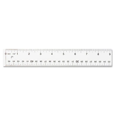 Westcott Drafting and Drawing Tools are some of the finest products of their kind for students and professionals. The commitment to meticulous quality and cutting edge innovation in measurement and art materials has earned an unparalleled reputation. Feature-packed ruler is ideal for home, school, office and shop. Precisely scaled in 1/16 on one side and millimeters on the other. Features raised beveled edges to eliminate smearing and extra margins at the ends for clear starts and stops. Plumb lines at ends aid in drawing or checking right angles. Hang-up hole. Ruler Type: Standard/Metric; Length: 18; Standard Scale: 1/16; Metric Scale: Millimeters.